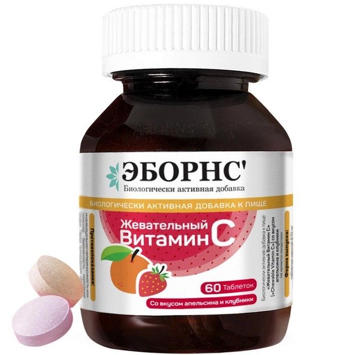 ЭБОРНС ЖЕВАТЕЛЬНЫЙ ВИТАМИН С /АПЕЛЬСИН И КЛУБНИКА - Биологически активная добавка (БАД) к пище