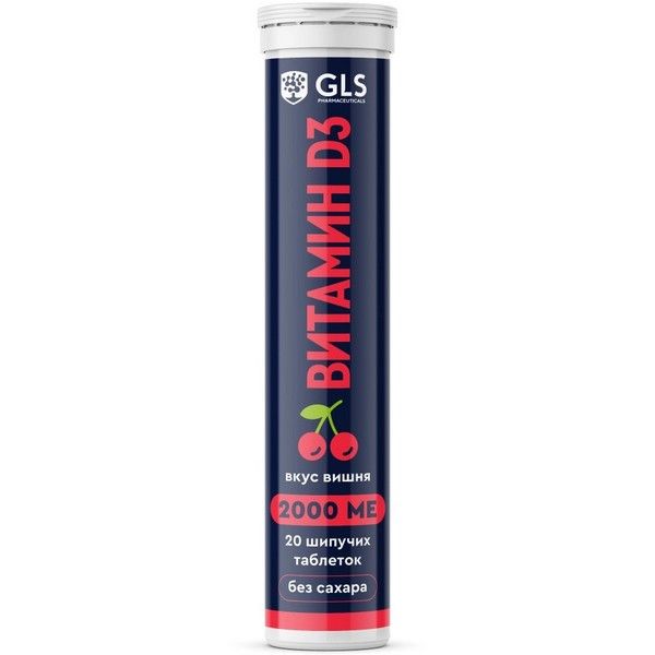 - Биологически активная добавка к пище «Витамин D3 без сахара GLS», 20 шипучих таблеток со вкусом вишня - Помогает регулировать усвоение кальция и фосфора, влияя на метаболизм костной ткани. Способствует укреплению и улучшению состояния костей, зубов и профилактике остеопороза.