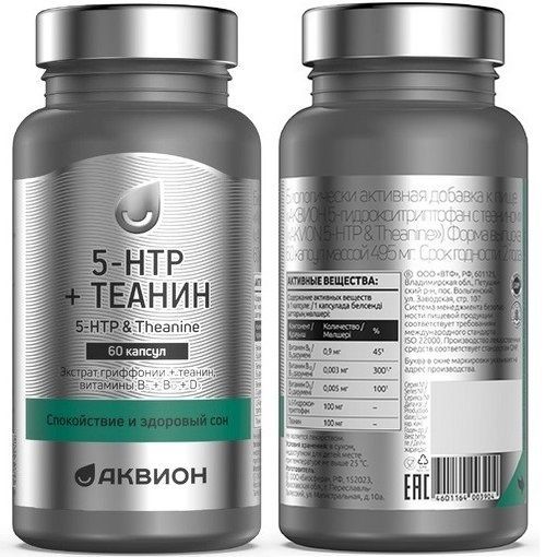 - АКВИОН 5-гидрокситриптофан c теанином - Спокойствие и здоровый сон.