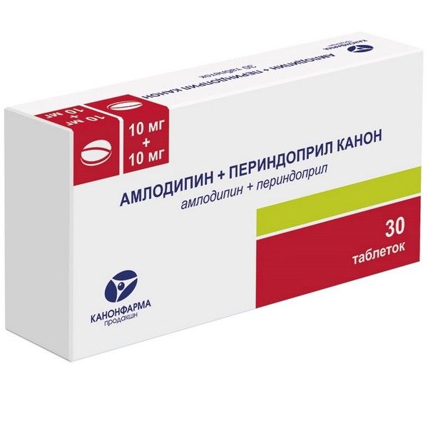 - Амлодипин+Периндоприл Канон, 10 мг + 10 мг, таблетки
