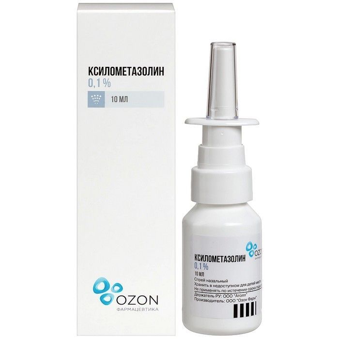 - Ксилометазолин, спрей назальный 0,1 % - у детей старше 6 лет и взрослых по 1 впрыскиванию в каждый носовой ход 2-3 раза в сутки.
