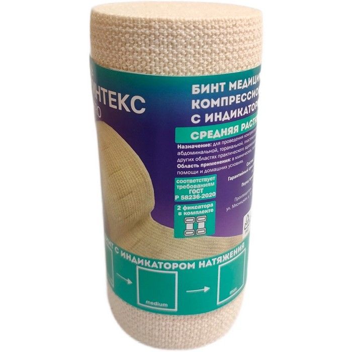 Бинт ИНТЕКС PRO с индикатором натяжения средней растяжимости с застеж. 1мх10см Интертекстиль/Россия