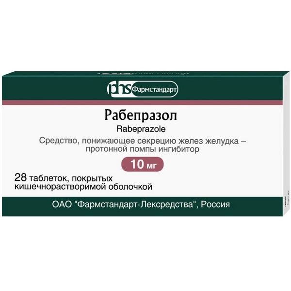 - Рабепразол, 10 мг, таблетки, покрытые кишечнорастворимой оболочкой.