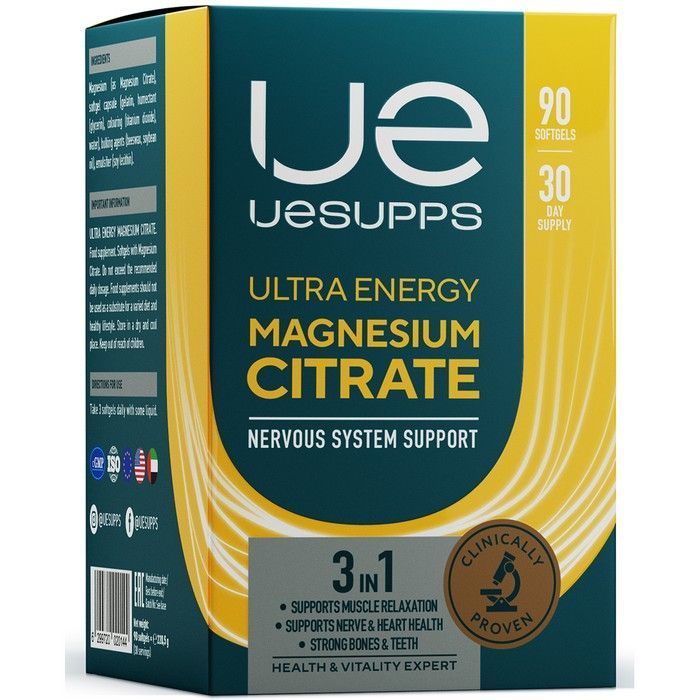 Магний цитрат Ultra Energy Magnesium Citrate от UESUPPS. Магний - важнейший в любом возрасте микроэлемент для обмена веществ, здорового функционирования нервной системы, выработки энергии и минерализации костной ткани. При стрессах, умственной и физической нагрузках потребность в этом микролементе увеличивается, а его дефицит приводит к раздражительности, хронической усталости, тревоге, нарушению сна, судорогам и спазмам мышц.