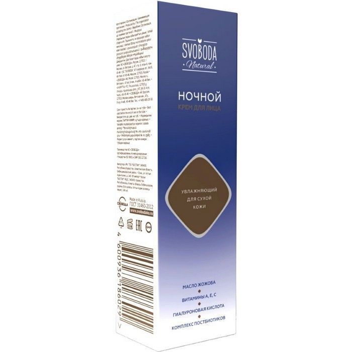 - Крем для лица увлажняющий SVOBODA ночной для сухой кожи - питает кожу ночью.