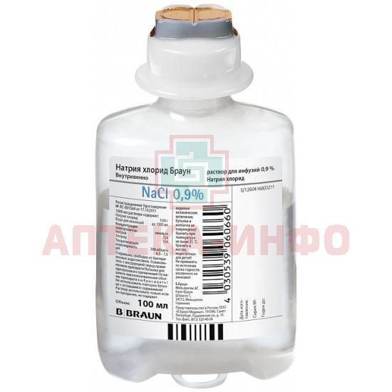 Натрия хлорид Браун бут. п/э.(р-р д/инф.) 0,9% 100мл №20 B.Braun Melsungen/Германия
