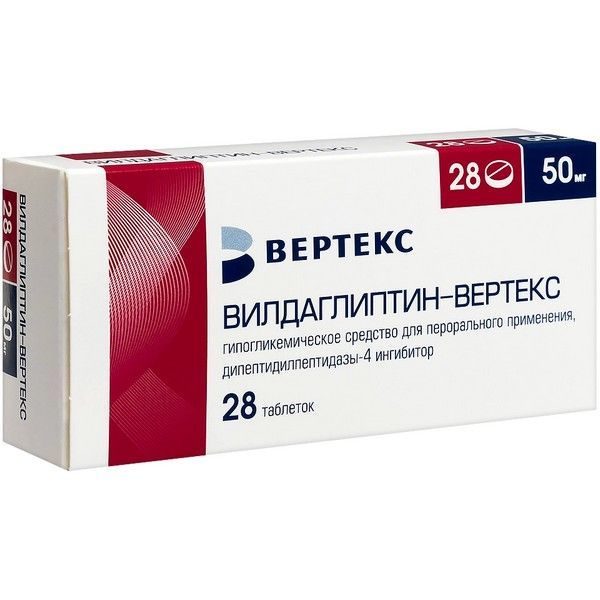 - Препарат Вилдаглиптин - ВЕРТЕКС используют в качестве терапии в случае неэффективности диетотерапии и физических упражнений у пациентов с сахарным диабетом 2 типа. Он помогает контролировать уровень глюкозы в крови. Препарат Вилдаглиптин - ВЕРТЕКС является пероральным гипогликемическим препаратом.