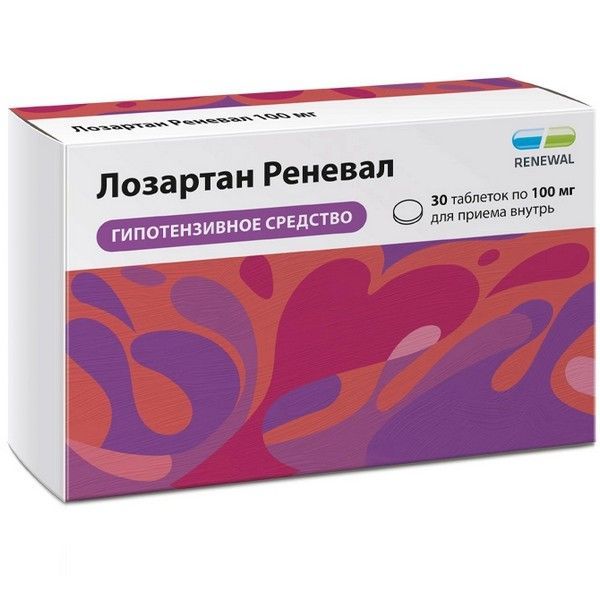 Лозартан Реневал таб. п/пл. об. 100мг №30 (15х2) Обновление