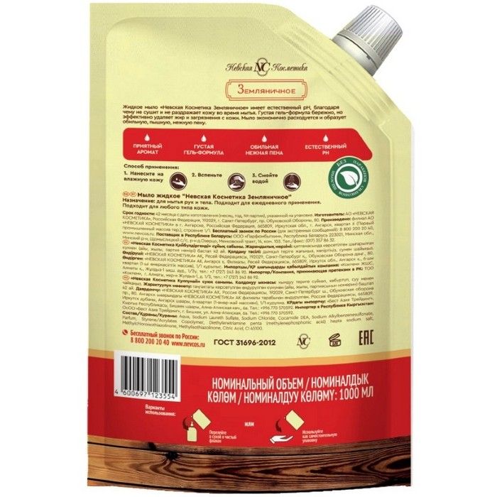 Мыло ЗЕМЛЯНИЧНОЕ жидк. 1000мл (дой-пак) Невская косметика/Россия