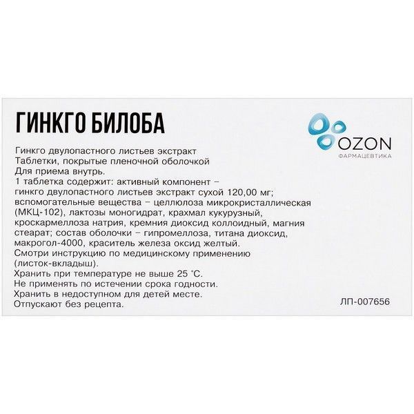 Гинкго Билоба таб. п/пл. об. 120мг №30 Озон