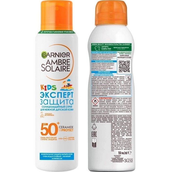 - ГАРНЬЕР АМБРЕ СОЛЕР СПРЕЙ ДЛЯ НЕЖНОЙ ДЕТСКОЙ КОЖИ СОЛНЦЕЗАЩИТНЫЙ KIDS ЭКСПЕРТ ЗАЩИТА SPF50+ - кожа ребенка защищена от солнца, нет неприятных ощущений и раздражения от прилипшего песка.