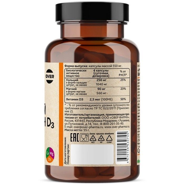 OVERVIT Магний + кальций + вит. Д3 капс. №100 Овер Фарма/Россия