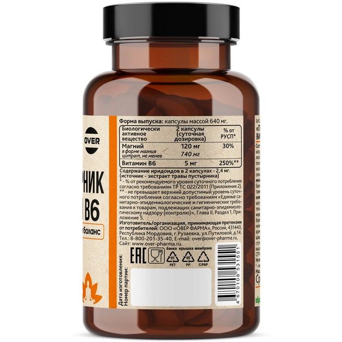 OVERVIT Пустырник +магний + витамин В6 капс. №60 Овер Фарма/Россия