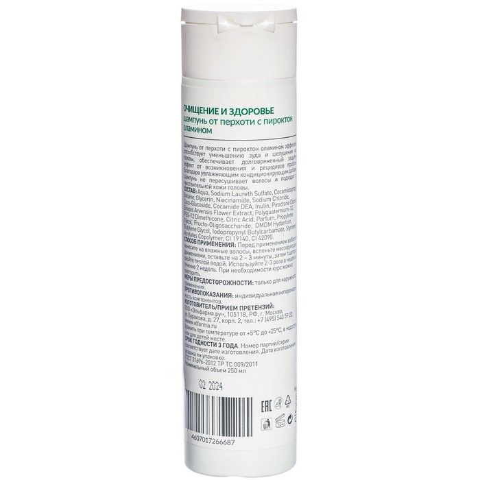 Шампунь ОЧИЩЕНИЕ и ЗДОРОВЬЕ п/перхоти с пироктоноламином 250мл Эльфарма