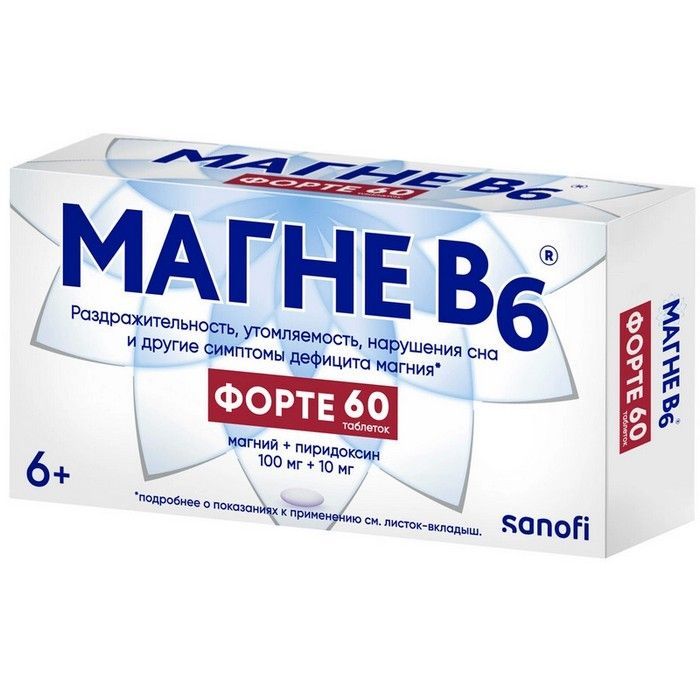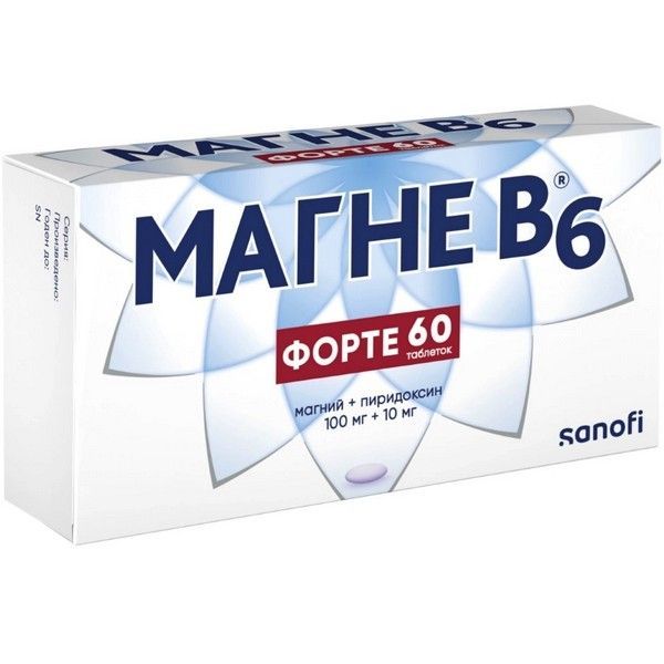 - Магне В6® форте, 100 мг + 10 мг, таблетки, покрытые пленочной оболочкой - 60 штук вместе с листком-вкладышем по применению вв уп.