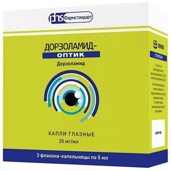 - Капли глазные, 20 мг/мл по 5 мл во флаконы-капельницы полимерные. По 3 флакона-капельницы вместе с инструкцией по применению помещают в пачку из картона.