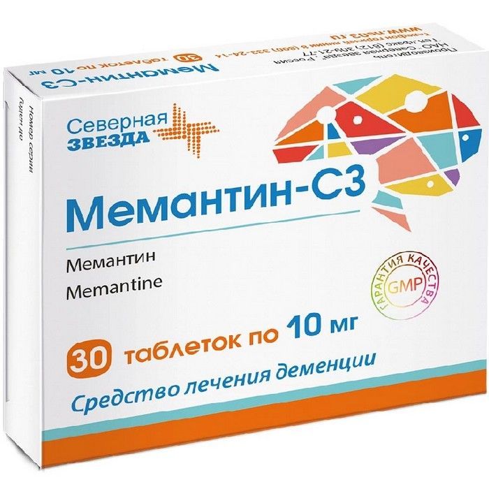 - Мемантин-СЗ, 10 мг, таблетки, покрытые пленочной оболочкой