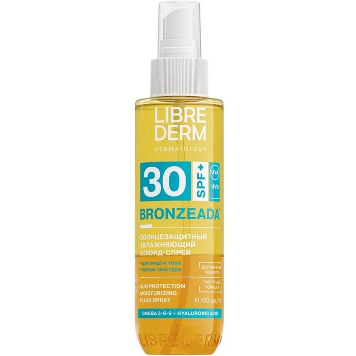 - LIBREDERM BRONZEADA Солнцезащитный увлажняющий двухфазный флюид-спрей SPF 30 .