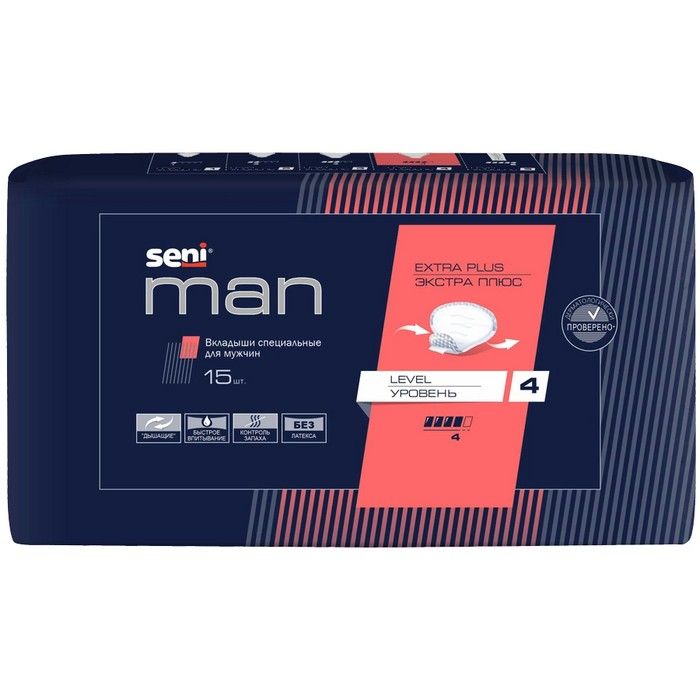 - Вкладыши специальные для мужчин seni man в размере EXTRA PLUS LEVEL 4 (ЭКСТРА ПЛЮС УРОВЕНЬ 4),