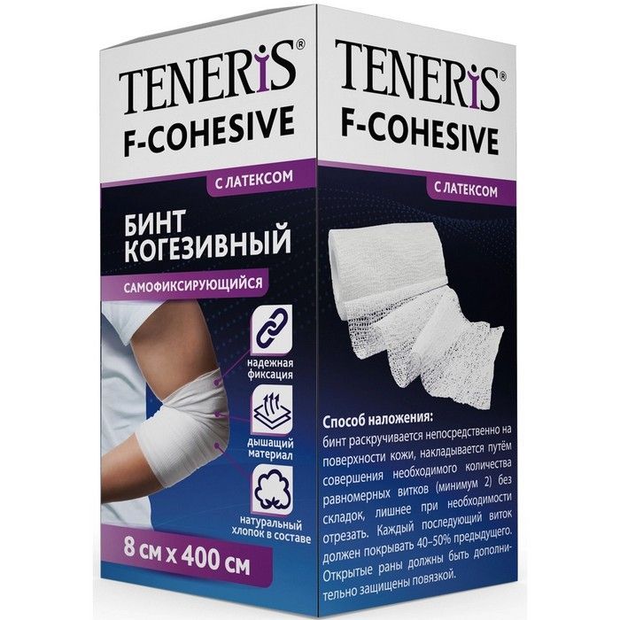 - БИНТ КОГЕЗИВНЫЙ САМОФИКСИРУЮЩИЙСЯ TENERIS НА ТКАНЕВОЙ ОСНОВЕ С ЛАТЕКСОМ - предназначен для фиксации перевязочных средств, подкладочного материала и компрессов на различных частях тела, в том числе на суставах и частях тела имеющих коническую или округлую форму.