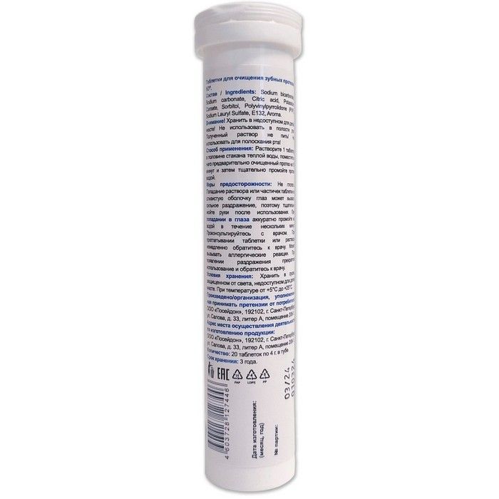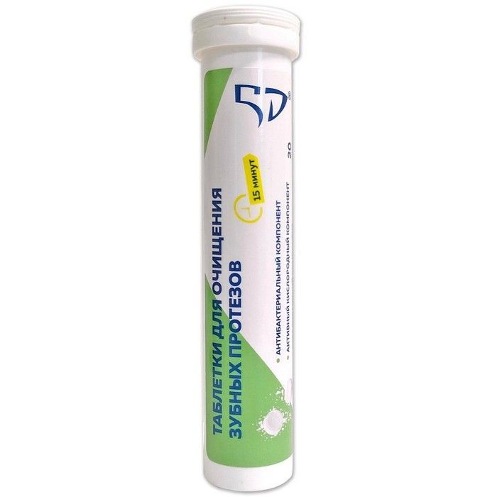 - Таблетки для очищения зубных протезов массой 4 грамма - 20 штук в тубе.
