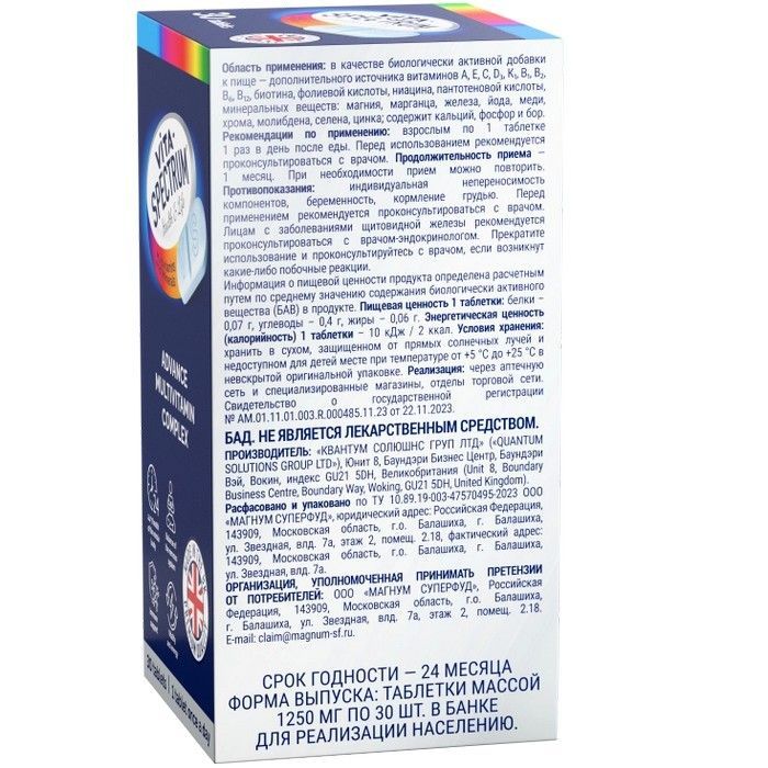 Витаспектрум Мультивитаминный комплекс для всей семьи Адванс таб. №30 Quantum Solutions Group LTD/Великобритания