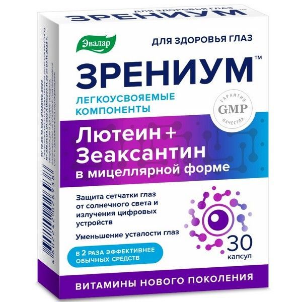 - ЗРЕНИУМ - препарат нового поколения на основе эффективных ингредиентов. Это единственный российский препарат, содержащий лютеин и зеаксантин в легкоусвояемой мицеллярной форме.