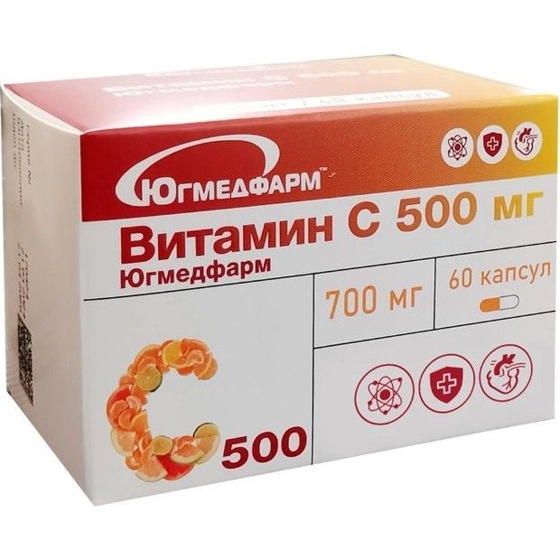 Витамин С 500мг капс. 700мг №60 Югмедфарм/Россия