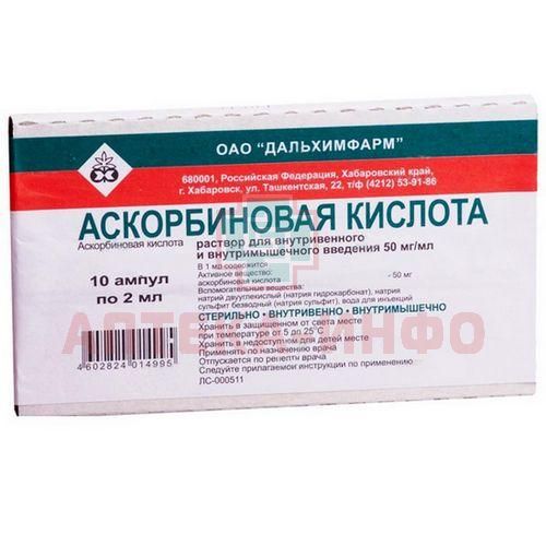Аскорбиновая кислота амп.(р-р д/в/в и в/м введ.) 50мг/мл 1мл №10 Дальхимфарм