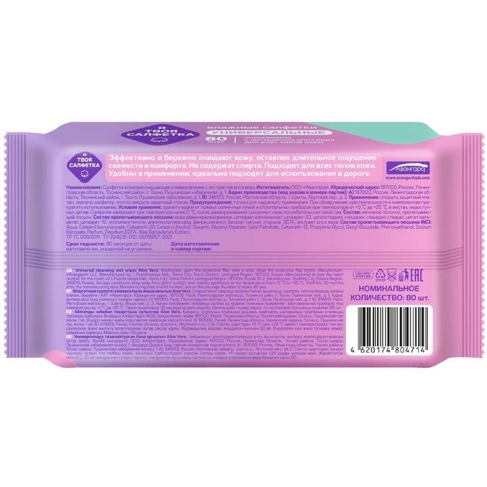 Салфетки Я твоя влажн. очищ. универс. с Алоэ вера №80 Авангард/Россия