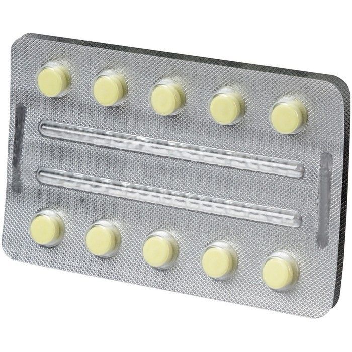 - Круглые плоскоцилиндрические таблетки от светло-желтого с зеленоватым оттенком цвета до желтого с зеленоватым оттенком цвета с фаской. Допускается наличие "мраморности".