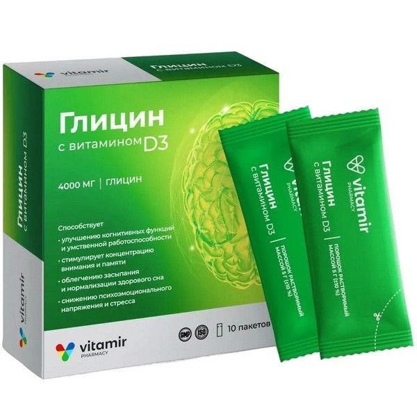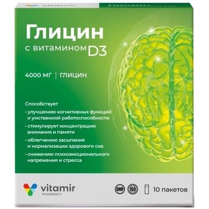Глицин с вит. Д3 Витамир пак.(пор.) 5г №10 Квадрат-С/Россия
