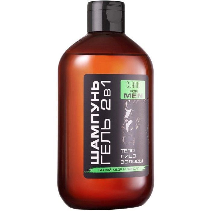 - CLARIO ШАМПУНЬ-ГЕЛЬ ДЛЯ ДУША МУЖСКОЙ 2В1 БЕЛЫЙ КЕДР И САНДАЛ - подходит для очищения волос и тела, для всех типов кожи и волос, а также для бороды.