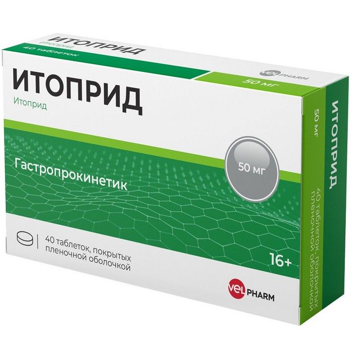 Итоприд таб. п/пл. об. 50мг №40 Велфарм