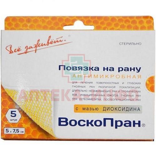 Воскопран с мазью диоксидина повязка 7,5x5см №5 Новые перевязочные материалы