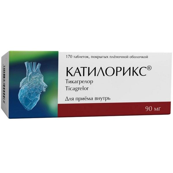 - Препарат Катилорикс® содержит в своем составе тикагрелор, который предотвращает склеивание тромбоцитов - кровяных пластинок, участвующих в свертывающей системе крови, тем самым снижает вероятность образования тромба, который может быть опасен из-за уменьшения притока крови к сердцу.
