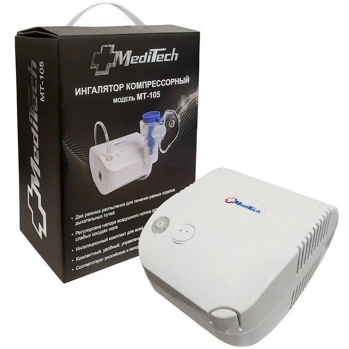 - Ингалятор (небулайзер) компрессорный MediTech модель МТ-105 в компактном исполнении для взрослых и детей. Предназначен для проведения комфортных ингаляций с возможностью регулировки продуцирования частиц аэрозоля разного размера для эффективной ингаляции верхних или нижних отделов дыхательной системы.