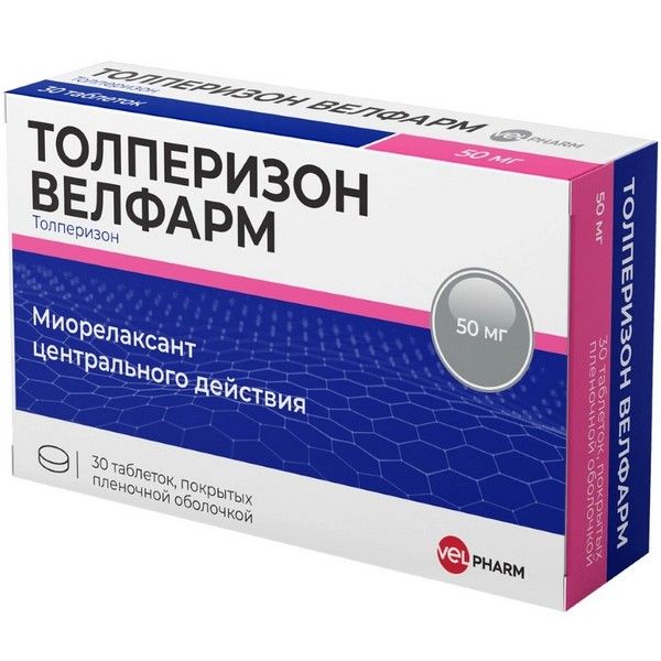 - ТОЛПЕРИЗОН ВЕЛФАРМ, 50 мг, таблетки, покрытые пленочной оболочкой
