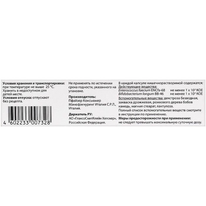 Бифиформ капс. №30 Haleon Italy Manufacturing/Италия