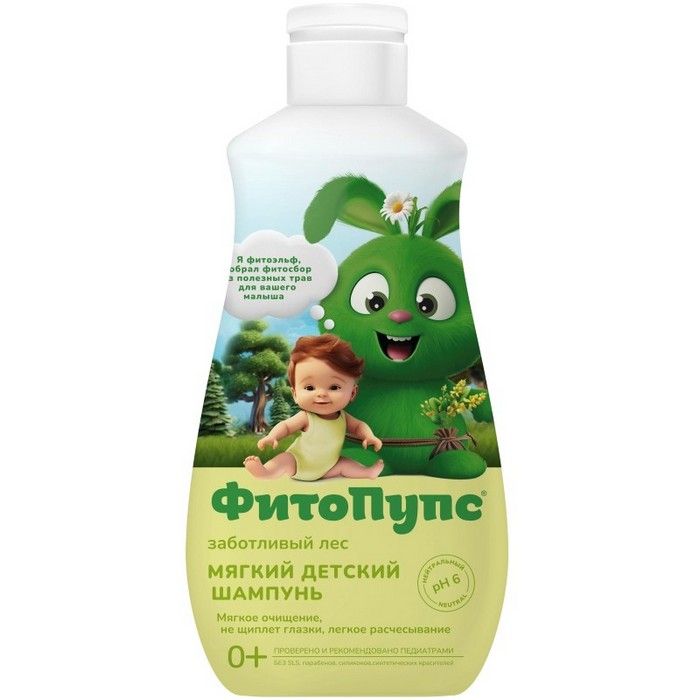 - Мягкий детский шампунь "Заботливый лес" серии ФитоПупс с волшебным ароматом цветов и трав мягко очищает волосики, кожу головы младенцев и совсем не щиплет глазки.