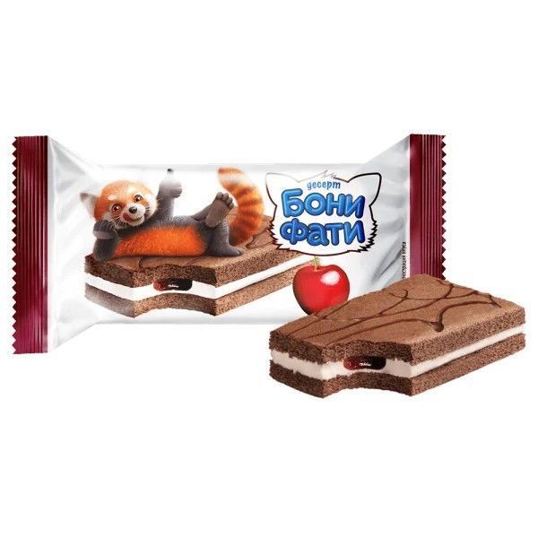 сахар, продукты яичные, мука пшеничная общего назначения М 55-23, фруктово-ягодный наполнитель «вишнёвый» (сахар, вишня, стабилизатор - пектины, краситель - кармины, ароматизатор - вишня), жир кондитерский (рафинированное дезодорированное растительное масло, антиокислитель - альфа-Токоферол), патока, масло кокосовое, сухое обезжиренное молоко, какао-порошок, подсластитель – сорбитовый сироп, влагоудерживающий агент – глицерин, эмульгаторы - эфиры полиглицерина и жирных кислот, моно-и диглицериды жирных кислот, соевый лецитин; заменитель масла какао нетемперируемый нелауринового типа (рафинированный растительный жир, эмульгатор – сорбитан тристеарат), разрыхлитель – гидрокарбонат натрия, консервант - сорбат калия, регулятор кислотности - кислота лимонная, соль, ароматизатор – ваниль, антиокислитель – аскорбиновая кислота.