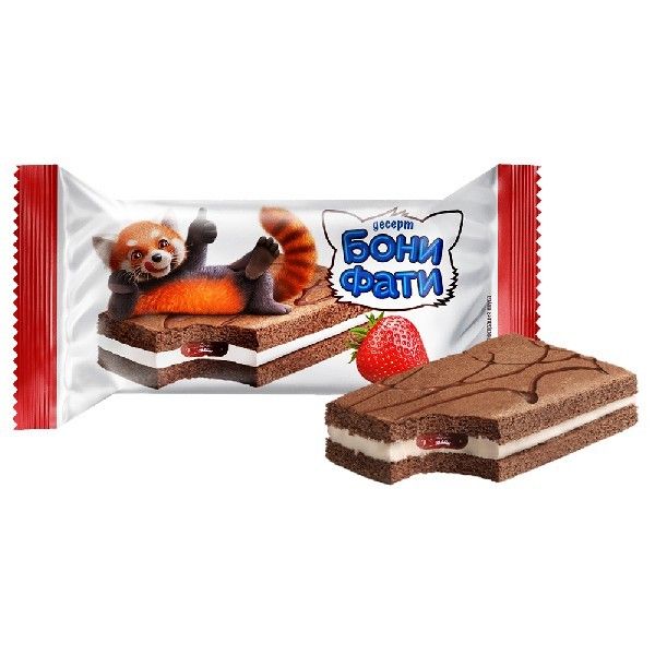 сахар, продукты яичные, мука пшеничная общего назначения М 55-23, фруктово-ягодный наполнитель «клубничный» (сахар, клубника, стабилизатор - пектины, краситель - кармины, ароматизатор - клубника), жир кондитерский (рафинированное дезодорированное растительное масло, антиокислитель - альфа-Токоферол), патока, масло кокосовое, сухое обезжиренное молоко, какао-порошок, подсластитель – сорбитовый сироп, влагоудерживающий агент – глицерин, эмульгаторы - эфиры полиглицерина и жирных кислот, моно-и диглицериды жирных кислот, соевый лецитин; заменитель масла какао нетемперируемый нелауринового типа (рафинированный растительный жир, эмульгатор – сорбитан тристеарат), разрыхлитель – гидрокарбонат натрия, консервант - сорбат калия, регулятор кислотности - кислота лимонная, соль, ароматизатор – ваниль, антиокислитель – аскорбиновая кислота.