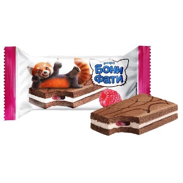 сахар, продукты яичные, мука пшеничная общего назначения М 55-23, фруктово-ягодный наполнитель «малиновый» (сахар, малина, стабилизатор - пектины, краситель - кармины, ароматизатор), жир кондитерский (рафинированное дезодорированное растительное масло, антиокислитель - альфа-Токоферол), патока, масло кокосовое, сухое обезжиренное молоко, какао-порошок, подсластитель – сорбитовый сироп, влагоудерживающий агент – глицерин, эмульгаторы - эфиры полиглицерина и жирных кислот, моно-и диглицериды жирных кислот, соевый лецитин; заменитель масла какао нетемперируемый нелауринового типа (рафинированный растительный жир, эмульгатор – сорбитан тристеарат), разрыхлитель – гидрокарбонат натрия, консервант - сорбат калия, регулятор кислотности - кислота лимонная, соль, ароматизатор – ваниль, антиокислитель – аскорбиновая кислота.