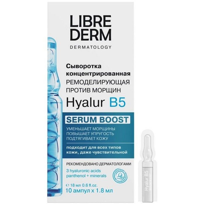 ЛИБРИДЕРМ СЫВОРОТКА КОНЦЕНТРИРОВАННАЯ РЕМОДЕЛИРУЮЩАЯ HYALUR B5 - для всех типов кожи, даже для чувствительной.