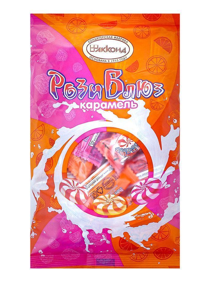 сахар, патока, регулятор кислотности - кислота молочная, красители - диоксид титана, кармины, аннато; соль, ароматизаторы – апельсин, земляника, малина, сливки.