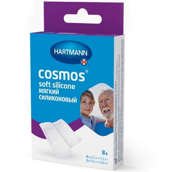 - Пластырь Cosmos® soft silicone (мягкий силиконовый) представляет собой неактивное самоклеящееся нестерильное изделие для однократного использования, состоящее из материала основы (материал-носитель) и подушечки, защищенной защитной бумагой.
