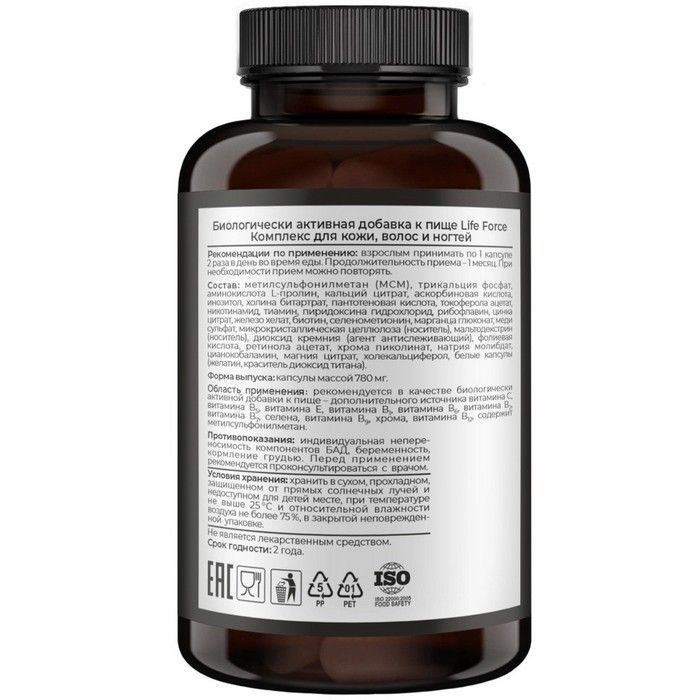 - LIFE FORCE КОМПЛЕКС ДЛЯ КОЖИ ВОЛОС И НОГТЕЙ - мягкие желатиновые капсулы массой.