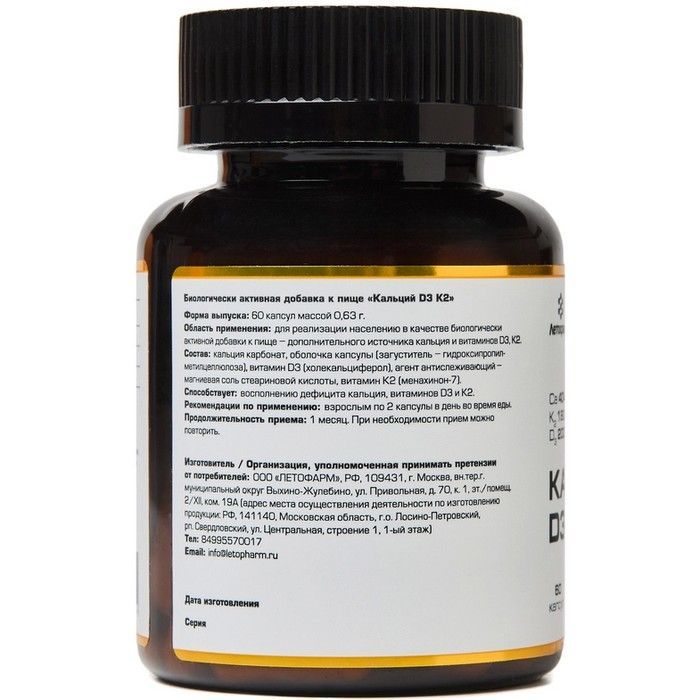 Летофарм Кальций Д3 К2 капс. №60 ЛетоФарм/Россия