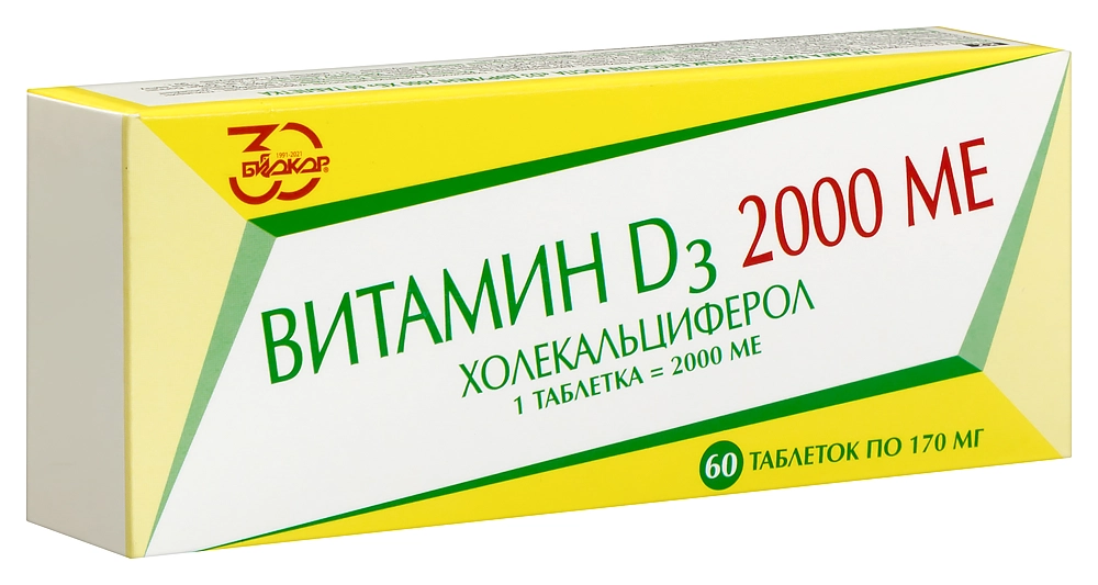 Витамин Д3 2000 МЕ таб. №60 Биокор/Россия