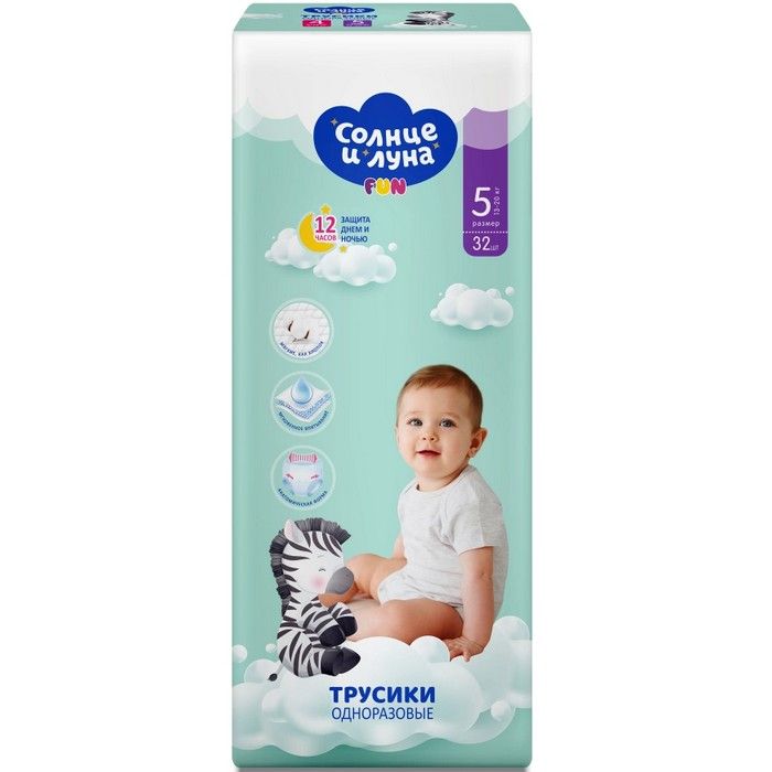 - Мягкие и удобные подгузники -трусики «Солнце и луна FUN» обеспечат хорошее настроение и спокойный сон Вашему малышу.